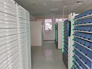 - Gestión de Referencias: El módulo de baldas gestiona hasta 216 referencias dispuestas en cajetines, posibilitando el tratamiento de envases, blisters, monodosis, tiras, bolsas y otros tipos de presentación.