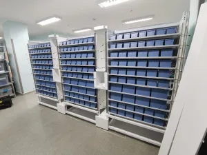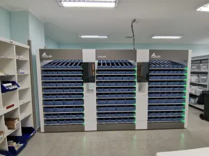 - Gestión de Referencias: El módulo de baldas gestiona hasta 324 referencias dispuestas en cajetines, posibilitando el tratamiento de envases, blisters, monodosis, tiras, bolsas y otros tipos de presentación.