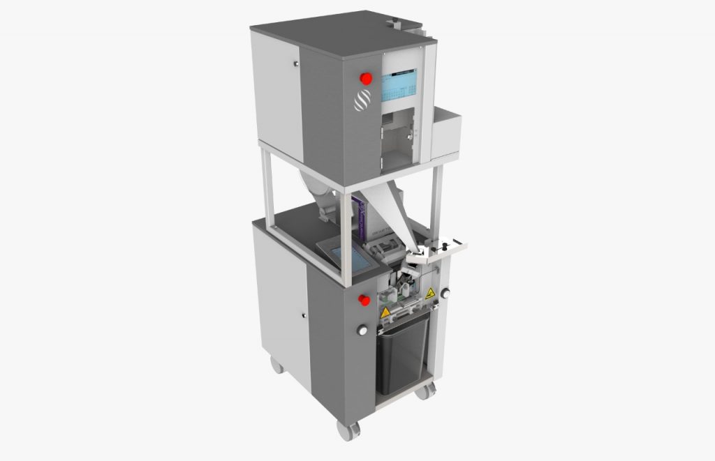 Solución completa y moderna para unitarización, Solución automatizada para unitarización. El equipo más moderno del mercado para unitarización de medicamentos, con sistema integrado para corte de blísteres y alimentación de viales.