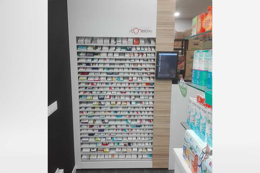 El Stock Light S4: Tiene 2,3 m (alto) x 1,3 m (ancho) pudiendo gestionar hasta 400 referencias con una capacidad máxima de 3.000 cajas almacenadas. Disponibles en dos profundidades, pudiendo ser de 50 cms y 70 cms, dependiendo del espacio físico de la Farmacia. Pantalla táctil delantera y trasera.