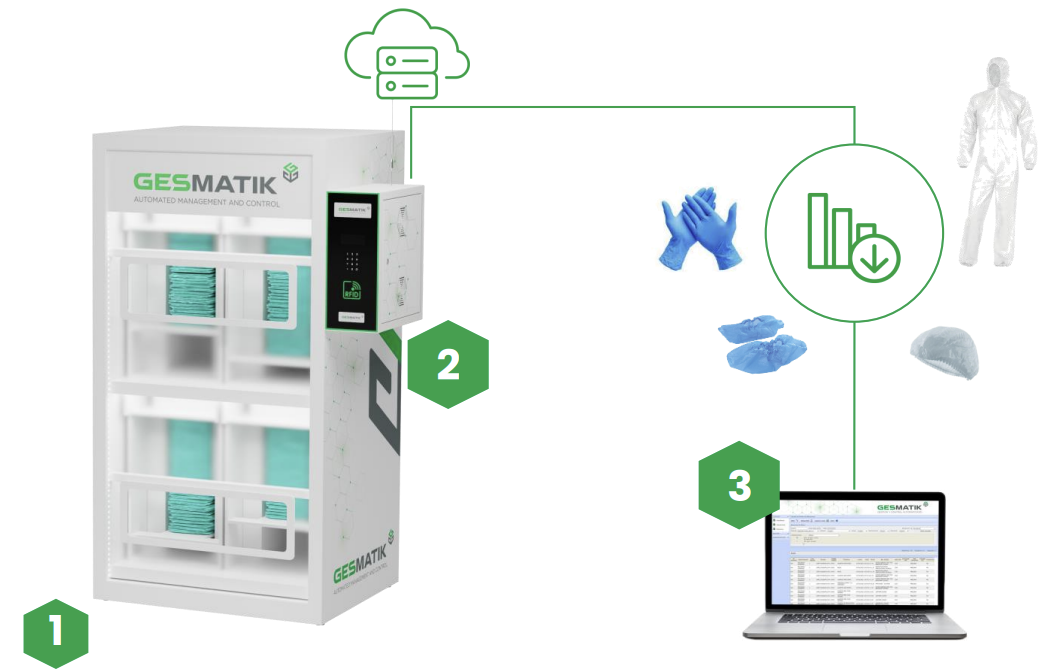 - Módulo de control GESMATIK, con identificación de usuarios (RFID, PIN).