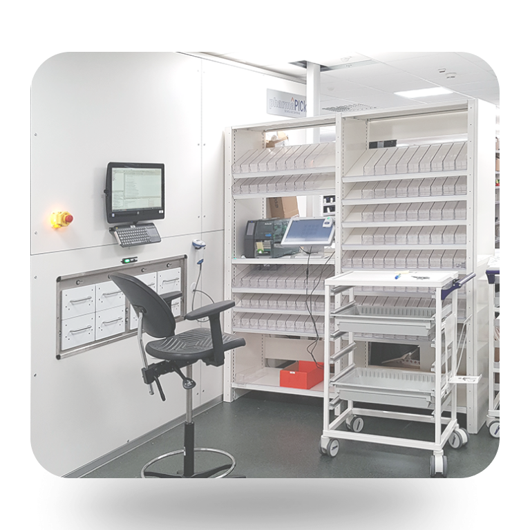 Con un conjunto único de características y funcionalidades, PHARMAPICK es el dispensador de gran volumen más eficiente y moderno del mercado que ofrece acceso restringido y controlado al inventario junto con estaciónes de trabajo múltiples, multitarea, ergonomía, seguridad, velocidad y precisión.